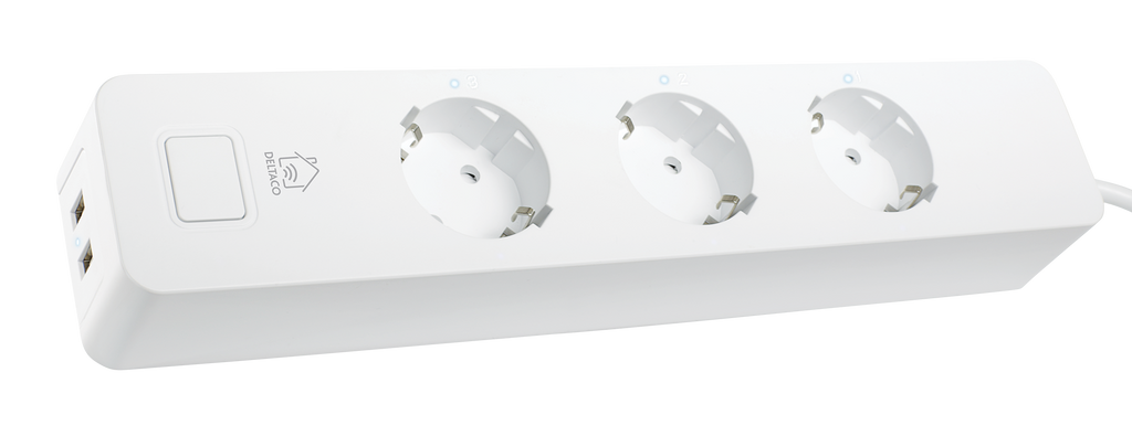 DELTACO SMART HOME grenuttag, WiFi 2,4GHz, 3xCEE 7/3, 2xUSB-A, 13A, 220-240V, 1,5m, vit