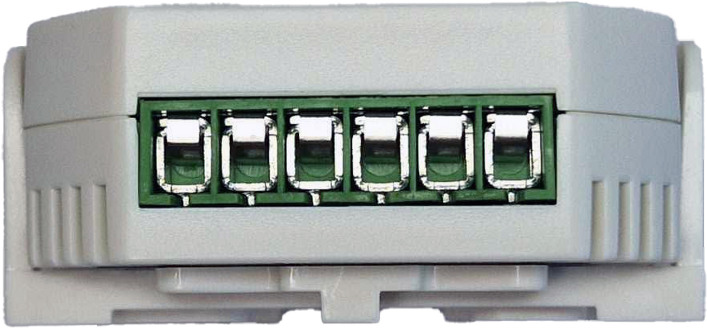 Monteringsclip följer med som möjliggör installation i dosa, på vägg och på DIN-skena.