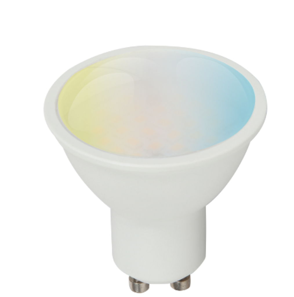 Smart LED lampa med GU10-sockel. Lampan kommunicerar via Wifi och styrs via Tuya-appen eller via någon av röstassistenterna från Google eller Amazon. Lampan har stöd för varrmvitt & kallvitt ljus och kan justeras mellan 2700 och 6500 Kelvin. I Tuya-appen kan man skapa grupper av flera lampor, schemalägga, skapa scenarion eller låta ljuset styras av musik via mobilens eller surfplattans mikrofon.