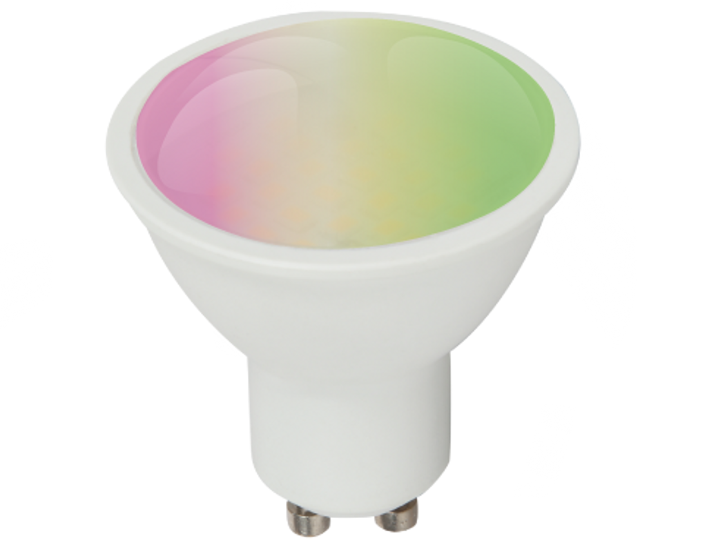 Smart LED lampa med GU10-sockel. Lampan kommunicerar via Wifi och styrs via Tuya-appen eller via någon av röstassistenterna från Google eller Amazon. Lampan har stöd för RGB och kan även justeras mellan varmvitt och kallvitt ljus. I Tuya-appen kan man skapa grupper av flera lampor, schemalägga, skapa scenarion eller låta ljuset styras av musik via mobilens eller surfplattans mikrofon.