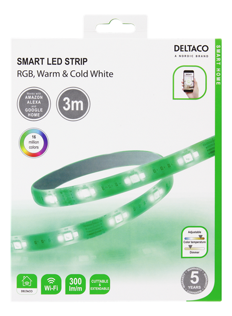 Smart RGB LED-list WiFi (Warm & Cold White) 3m - DELTACO