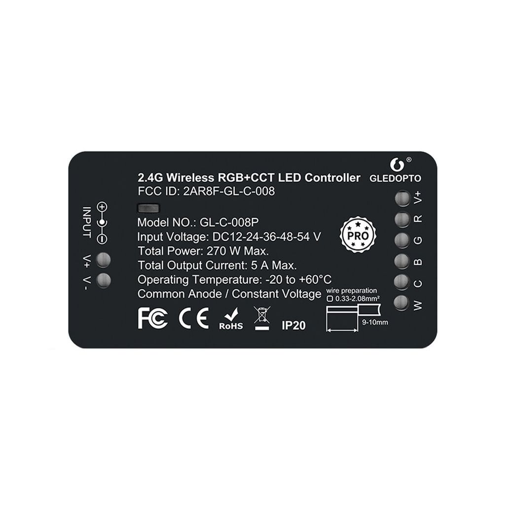 Klarar RGB, RGBW, RGBTW och CCT-lister.