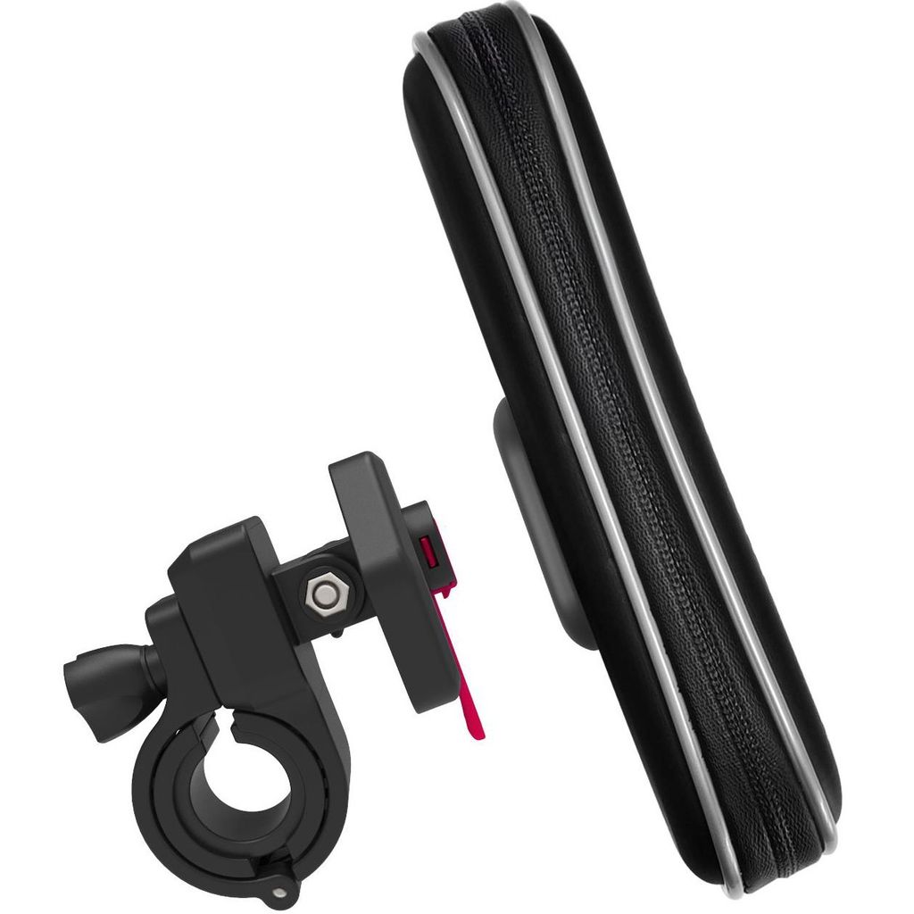 SNAPFLEX är utrustad med ett löstagbart vattentätt fodral, som enkelt fästs och lossas från hållaren och skyddar smartphonen från regn, lera och damm. Dess genomskinliga fönster är kompatibelt med Face ID och touchskärmar, vilket gör att du kan använda telefonen utan att ta bort den från fodralet. SNAPFLEX-fodralet är kompatibelt med smartphones upp till 6,9 tum, fodralet öppnas och stängs med en dragkedja.