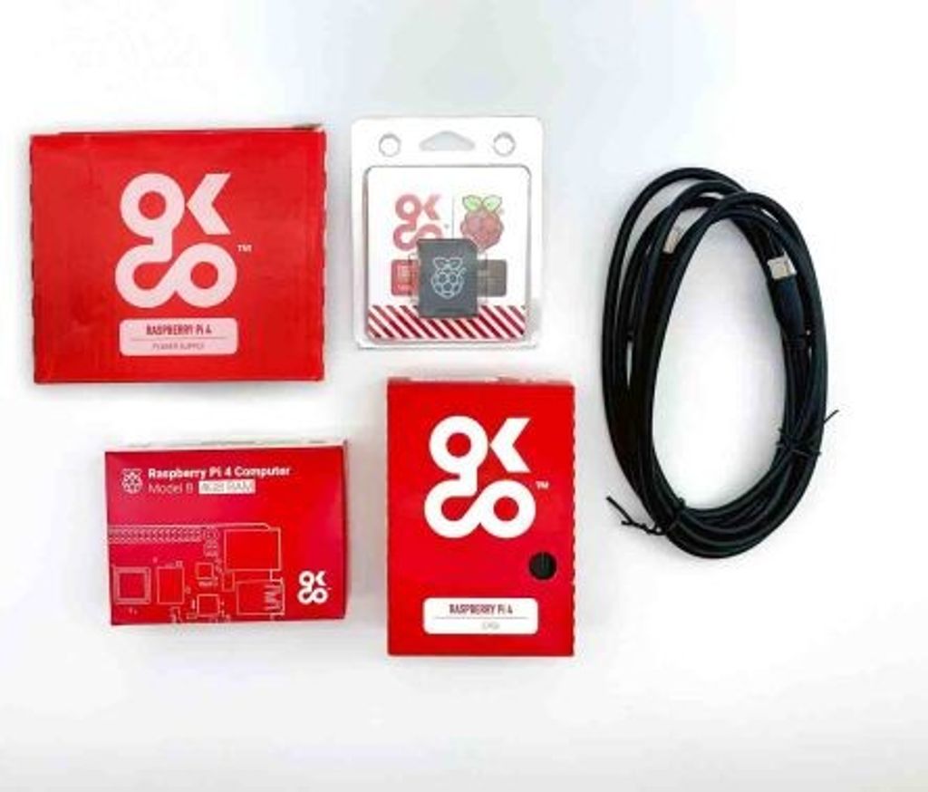 Varje paket innehåller en Raspberry Pi 4 (2GB), spänningsmatning, HDMI kabel, skal och SD kort på 16GB med NOOBS förinstallerat.