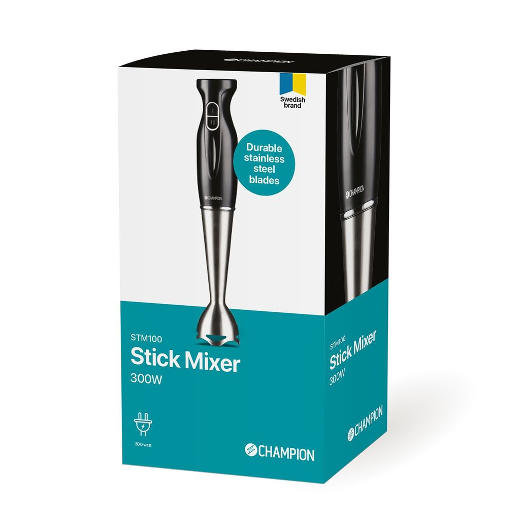 Champions Stavmixer är för dig som uppskattar en hjälpande hand i köket, oavsett om du behöver mixa, hacka eller mosa. Med slitstarka knivar i rostfritt stål, en kraftig motor på 300W samt 2 olika hastighetsval blir den till en pålitlig assistent i köket. Champions Stavmixer har en ergonomisk design som gör att du kan använda den ofta. Mixa milkshakes, nyttiga smoothies och smakrika såser – bara fantasin sätter gränser.