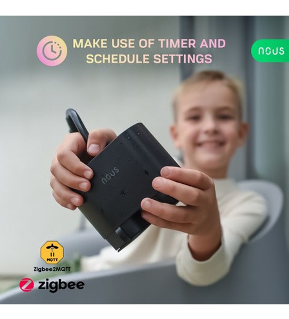 NOUS A4Z ZigBee smart utomhusuttag är det perfekta tillägget till ditt smarta hem. Med ZigBee-teknik erbjuder detta dubbeluttag både lång räckvidd och pålitlighet samtidigt som det fungerar som en ZigBee-repeater.