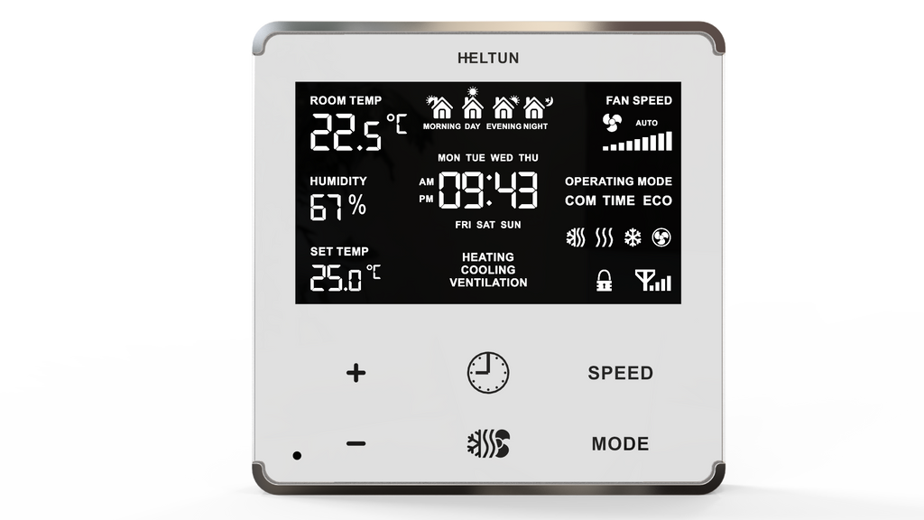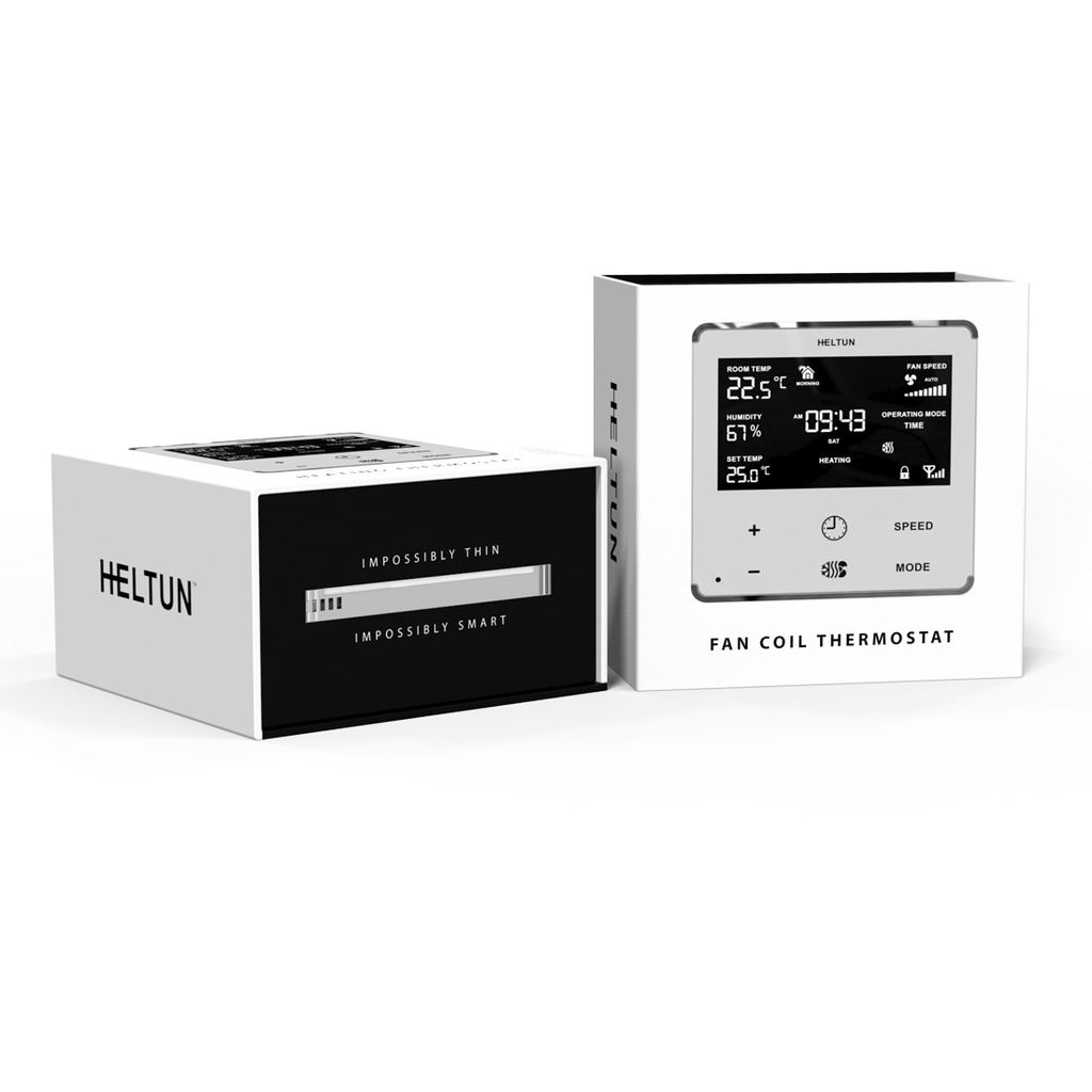 Fläktspolstermostaten från HELTUN är den perfekta enheten för att integrera dina 2-rörs- och 4-rörs fläktspolsenheter i en smart Z-Wave-miljö som ger fjärr-kontroll över ditt system ihop med reela energibesparingar.