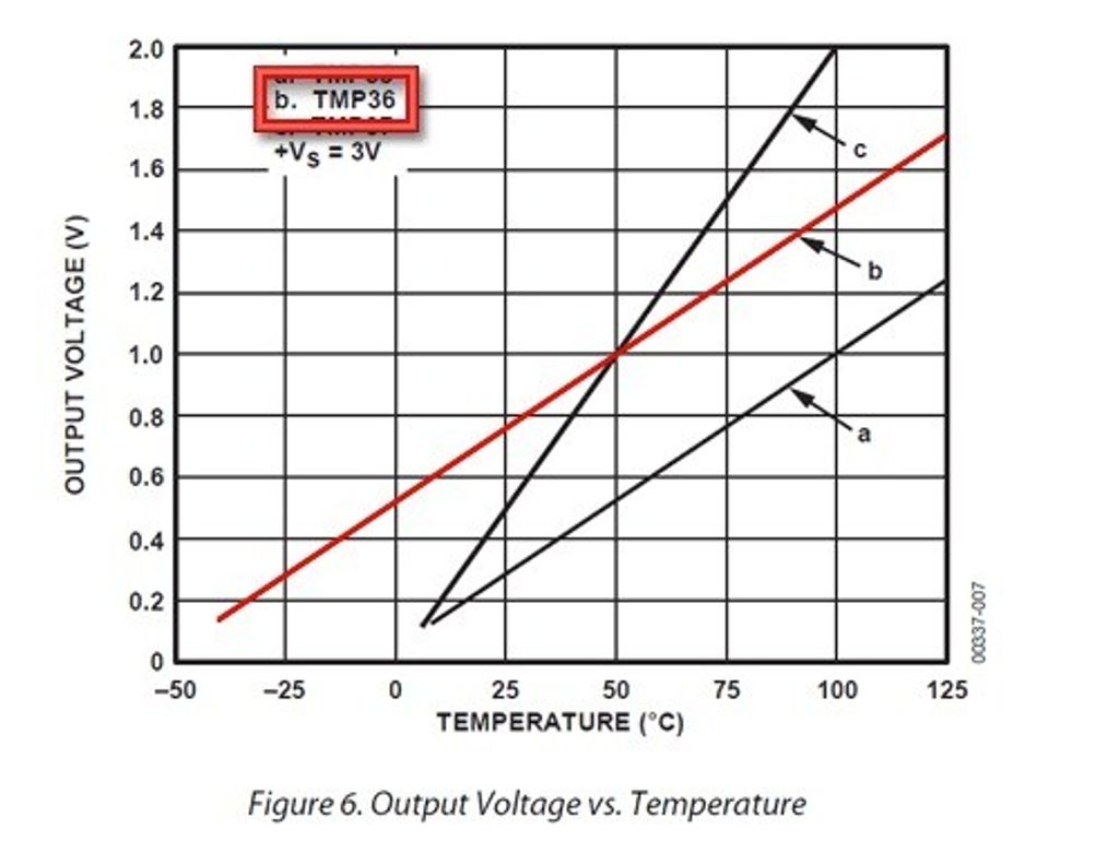 See the webpage for datasheets and more information at [this link](http://www.analog.com/en/temperature-sensing-and-thermal-management/digital-temperature-sensors/tmp36/products/product.html). For a full tutorial with wiring diagrams, code examples, and project ideas, please read the [temp. sensor tutorial page](http://www.ladyada.net/learn/sensors/tmp36.html)!