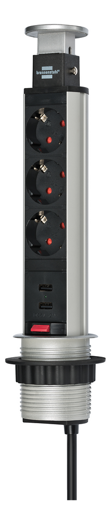 Brennenstuhl Tower Power Grenuttag kan du montera direkt på ditt skrivbord. Tack vare två USB- portar laddar du även dina mobila enheter. Försedd med 2 meters anslutningskabel. Med ett enkelt tryck på toppen lyftes sedan hela uttagslisten till sitt öppna läge. Det passar till kontor, kök, verkstad etc.
