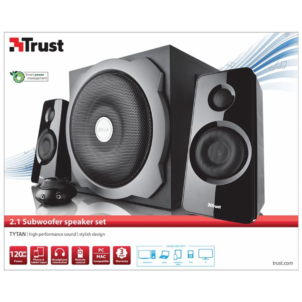 - 2.1-högtalarset med subwoofer i trä och total RMS-uteffekt på 60 Watt (120 Watt maxeffekt)
