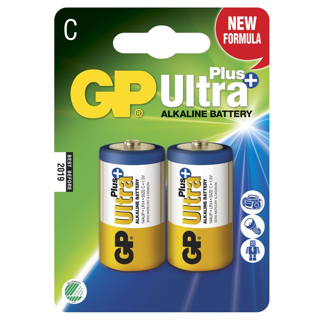 GP Ultra Plus Alkaline C-batteri, 14AUP/LR14, 2-pack