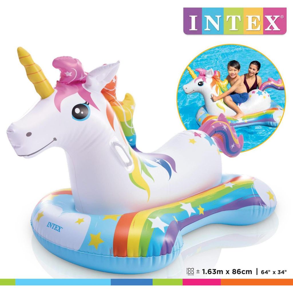 Intex Unicorn Ride-On 1.63m x 86cm 349:- 57552 Intex Produktbeskrivning Den här badmadrassen har en enhörningsdesign och är avsedd för avkoppling en solig dag - i poolen eller på stranden- Storlek: 163 x 86 cm Relaterade kategorier