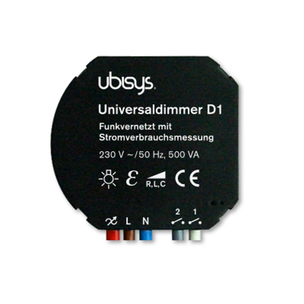Universal dimmer D1 - Wireless with integrated power consumption meteringThis universal dimmer allows for a fluid "dimming" of conventional light bulbs, high-voltage halogen lamps, low-voltage halogen lamps with a conventional wound transformer, low-voltage halogen lamps with an electronic transformer, and even dimmable LEDs and CFL lamps. Unfortunately conventional fluorescent lights can not be dimmed.