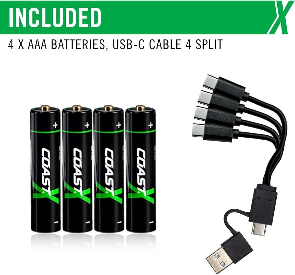 Inkluderar en 4-1 USB kabel så du kan ladda alla batterier samtidigt!