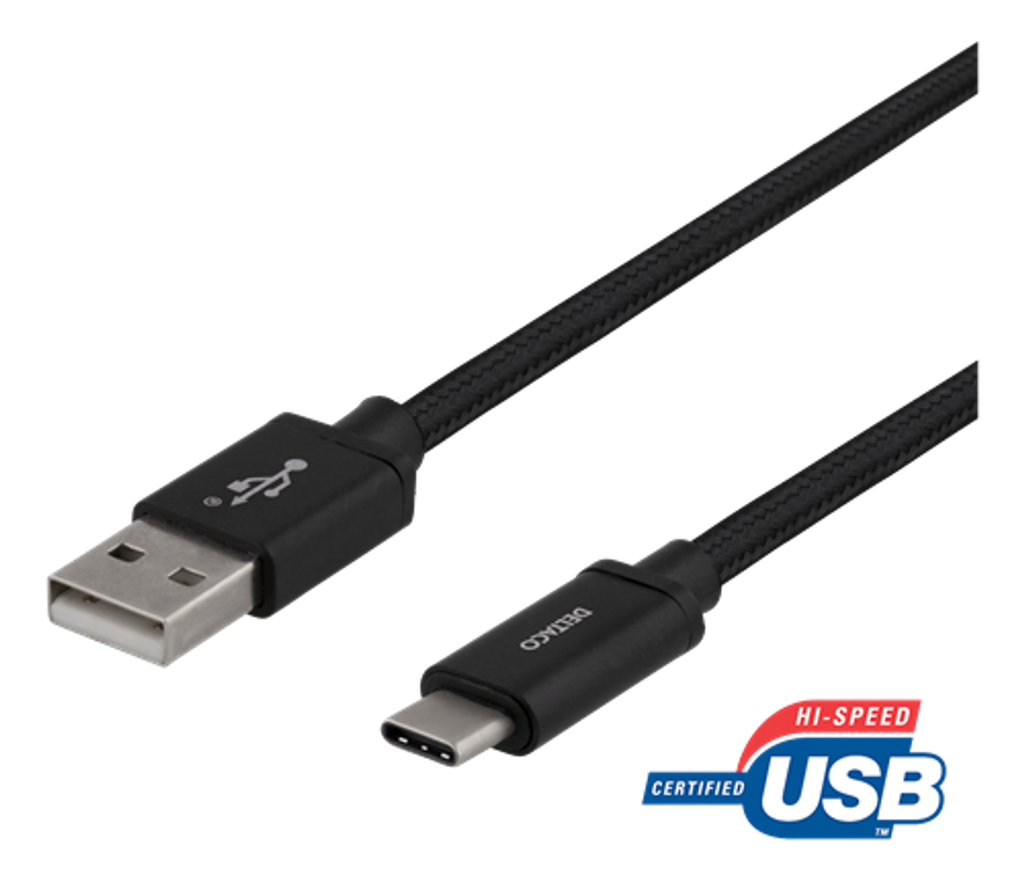 USB-C kabel för anslutning av en enhet som använder USB-C till en strömkälla eller annan USB-A enhet