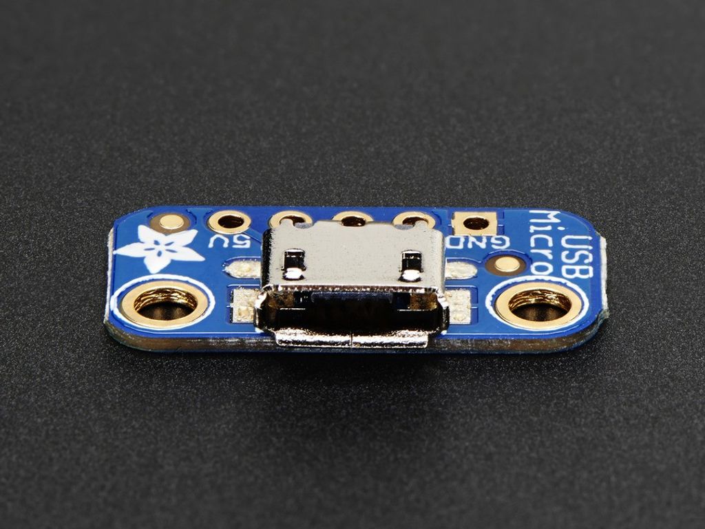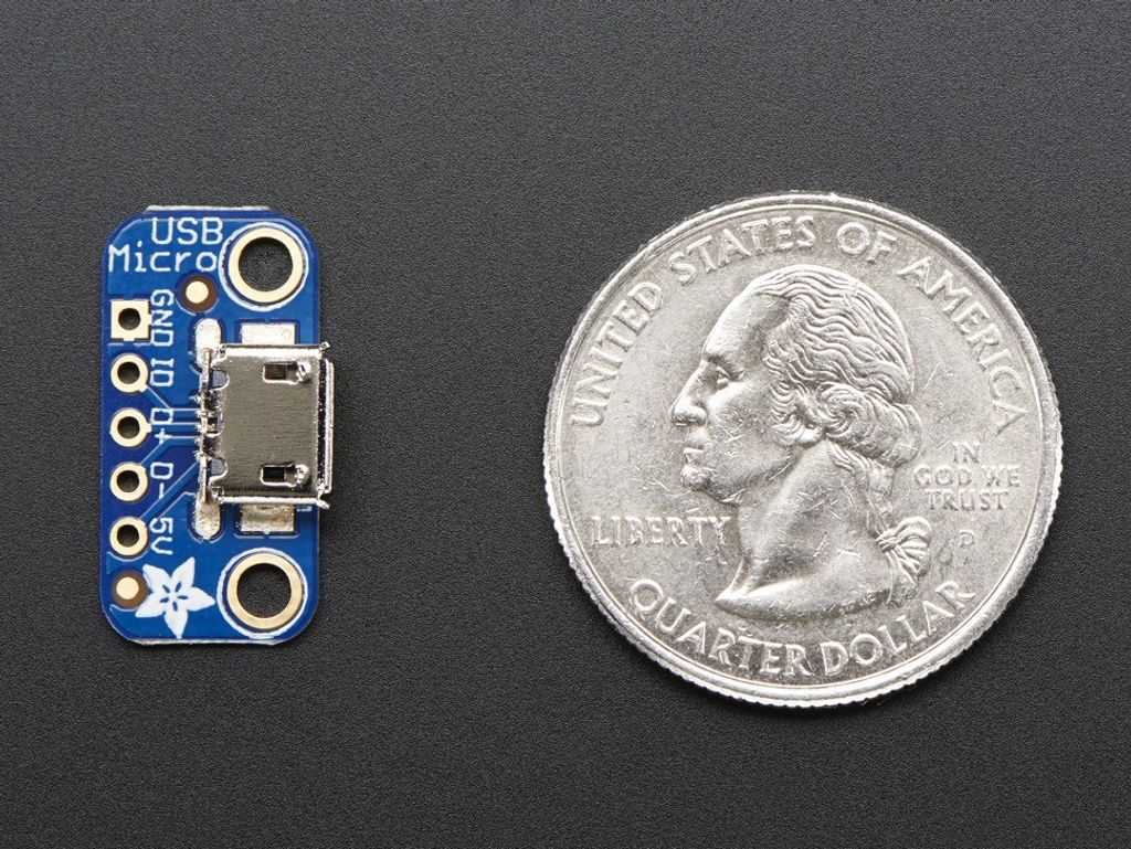 Comes with one fully assembled and tested micro B breakout PCB and a small stick of 0.1" header so you can solder it on and plug into a breadboard.