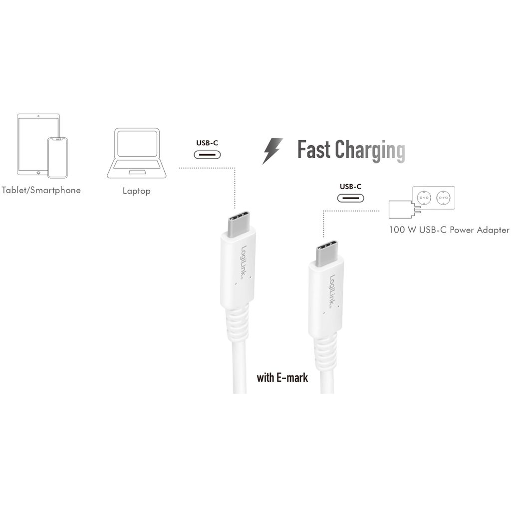 USB 4 Gen 3 Type-C-kabel med inbyggt E-mark-chip; som intelligent stödjer anslutna enheter för att leverera snabbladdning upp till 20 V/5 A (100 W), dataöverföring upp till 40 Gbps och videoupplösning upp till UHD 8K/60 Hz.