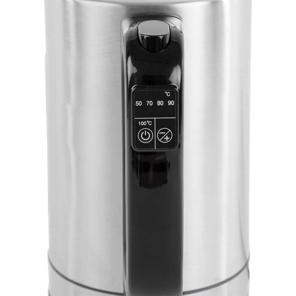 Champions Vattenkokare i rostfritt stål ger full kontroll över vattnets temperatur, perfekt för té-entusiasten och barnfamiljen. På handtagets kontroll väljer du enkelt önskad temperatur från de fem temperaturinställningarna mellan 50–100 °C. Vattenkokaren har en kapacitet på 1,7L, torrkokningsskydd och automatisk avstängning för största säkerhet samtidigt som den har en tidlös design.