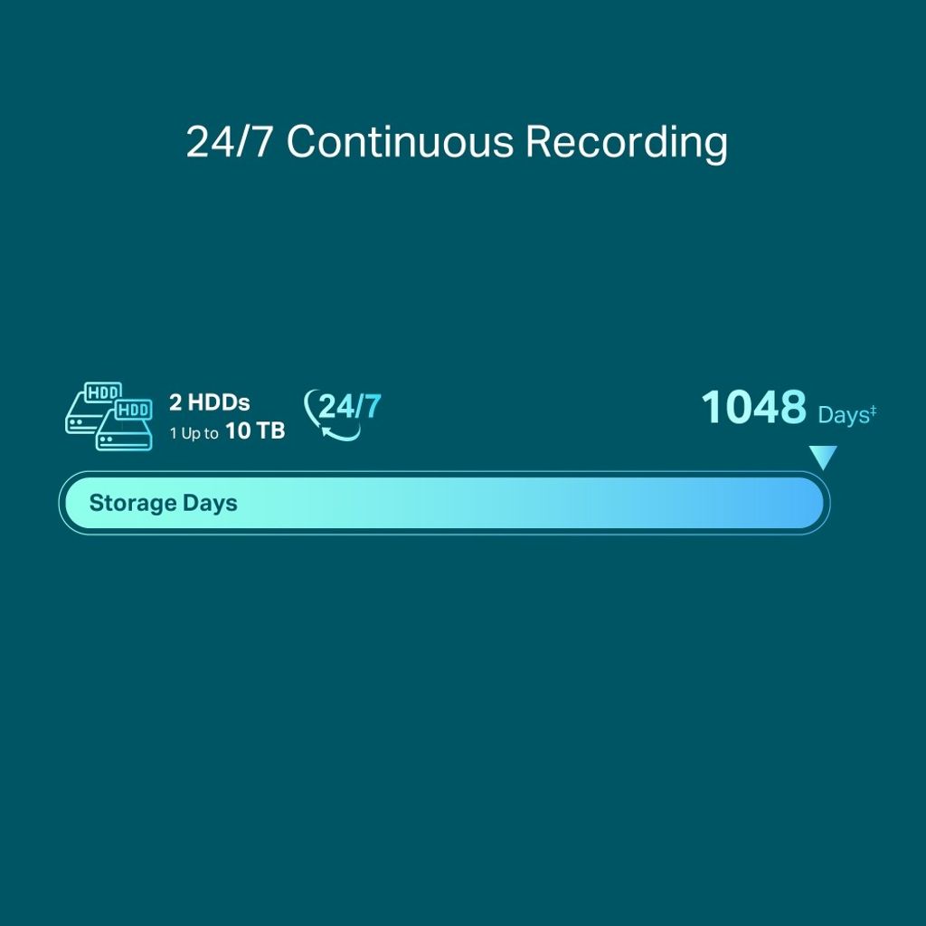 - Lagring: Upp till 20 TB – motsvarar upp till 1048 dagars inspelning†