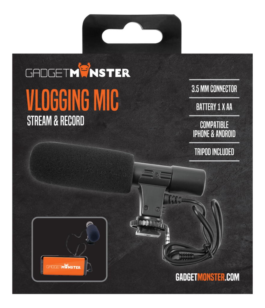 Gadget Monster Smart Vlogging Mic för smartphones eller kameror, svart