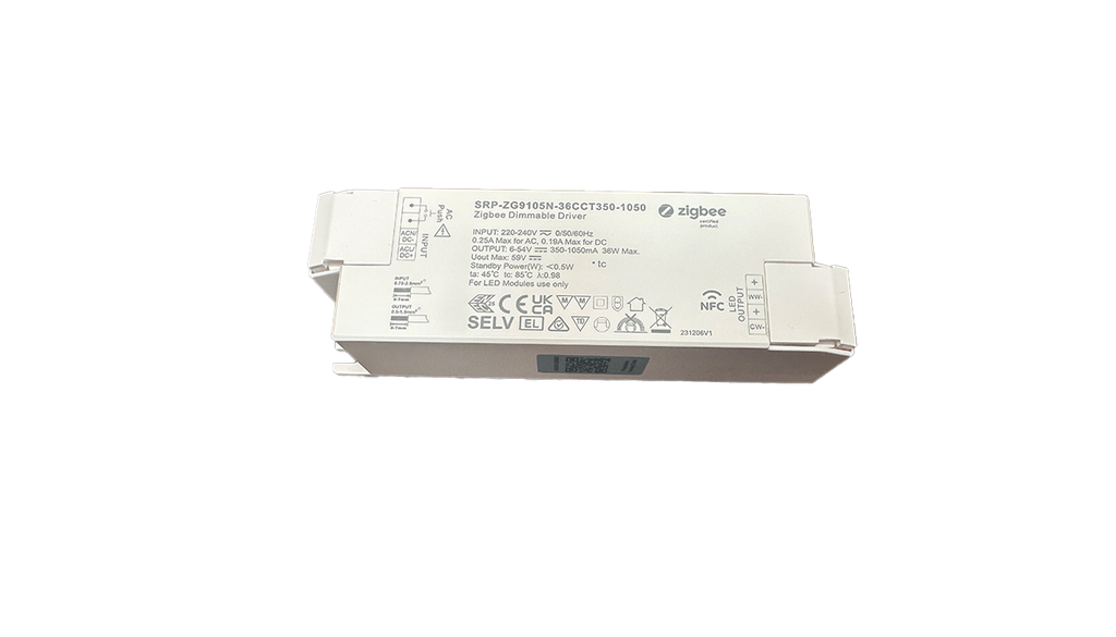 Med en maximal utgångseffekt på 36W och justerbar ström i intervallet 350-1050 mA (via NFC-programmering) erbjuder den exakt kontroll över LED-belysningen. Drivern har stöd för amplitud- och CCR-dimning, vilket ger jämn och djup dimning utan flimmer, även vid låga nivåer. Tack vare PUSH DIM-funktionen kan användare enkelt styra av/på samt manuellt justera ljusstyrka och färgtemperatur.